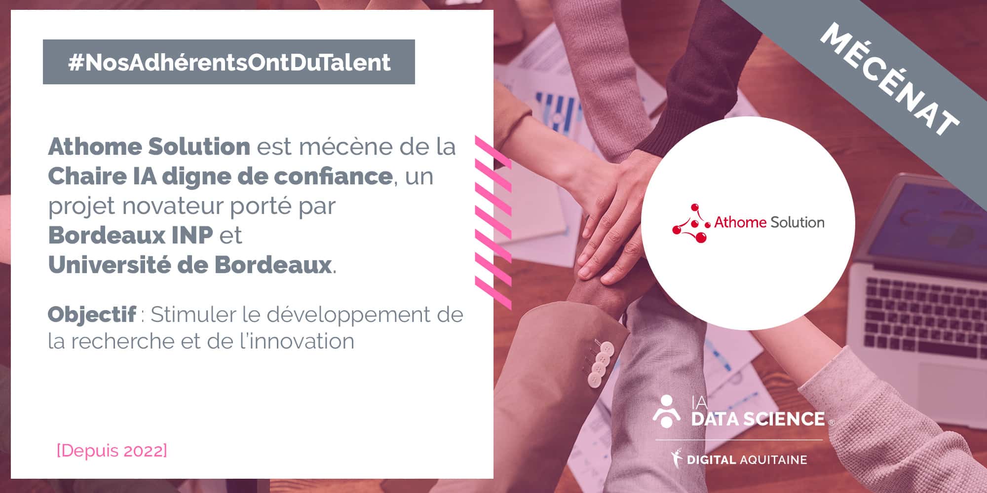 Depuis 2022, Athome Solution est fière d’être mécène de la Chaire IA digne de confiance, un projet novateur porté par Bordeaux INP et Université de Bordeaux.